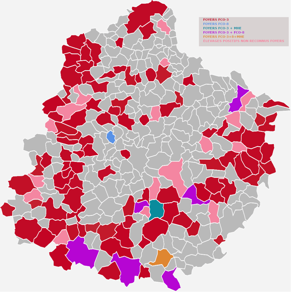 FCO BTV8 = 7 CAS EN SARTHE (PAS D’AUGMENTATION depuis la semaine derniere)
